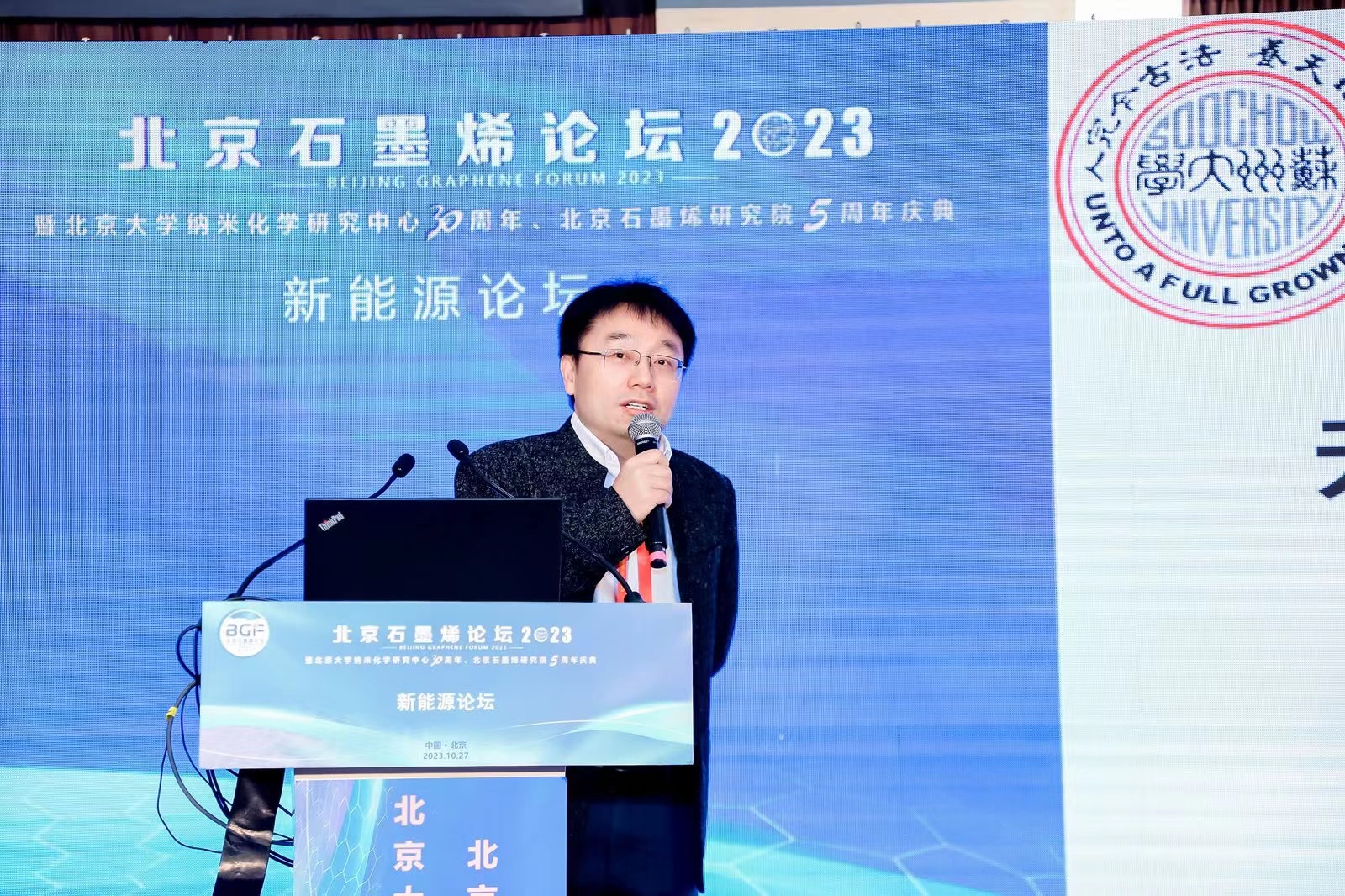 2023年10月24日-27日,“北京石墨烯论坛2023暨北京大学纳米化学研究中心成立30周年庆典”(BGF2023)在北京·稻香湖景酒店成功举办。10月27日,分论坛之一的首届新能源分论坛取得圆满成功,本分论坛是在以往分论坛板块设置之外首次开设,苏州大学能源学院作为“苏州大学-北京石墨烯研究院协同创新中心”的合作单位承办了本分论坛,本分论坛旨在围绕石墨烯等先进材料在新能源领域中的应用,深入探讨交流最新科研成果,分享产业化进展的最新动态。