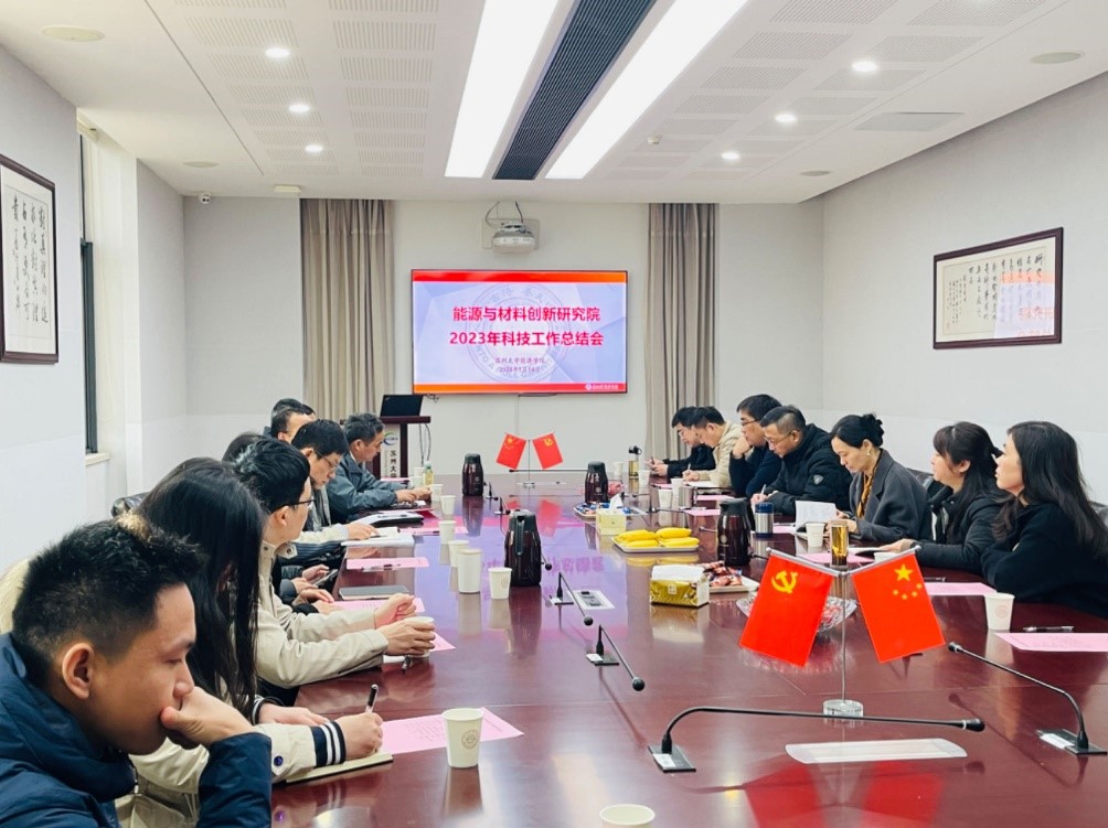 1月14日上午9点,能源与材料创新研究院在新能源大楼附楼102会议室召开了2023年度科技工作总结会。会议全面回顾了今年研究院各项工作开展情况,部署下一阶段重点工作。能源学院和研究院领导班子、各研究部部长以及全体PI共同参会。会议由孙靖宇教授主持。