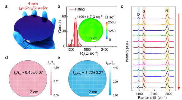 图3. 4英寸Gr-SiO2/Si晶片的均匀性评估