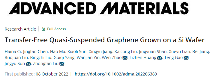 孙靖宇课题组AM:在硅晶片上生长的无转移准悬浮石墨烯