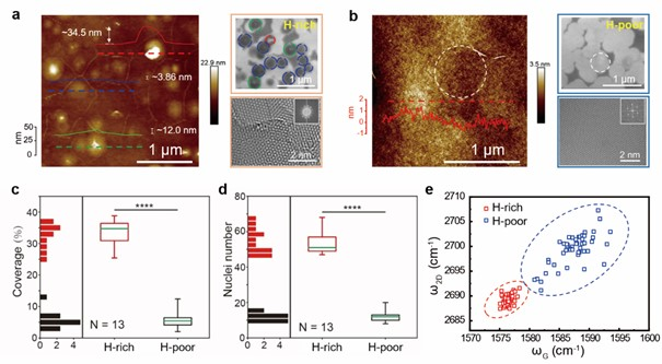 使用低于常规的H2在生长过程中同时引入甲醇可以有效地削弱合成石墨烯与底层基板之间的相互作用。因此可以微调生长模式,生产出具有晶圆级均匀性的单层石墨烯薄膜。因此,在4英寸Si 晶片上生长的石墨烯能够无转移地制造基于石墨烯的高性能场效应晶体管阵列,其电荷中性点几乎没有变化,表明石墨烯具有准悬浮特性。此外,可以实现高达 15000 cm2 V-1 s-1 的载流子迁移率。这项研究将为实用石墨烯器件在电介质上合成晶圆级高质量石墨烯提供有意义的见解。